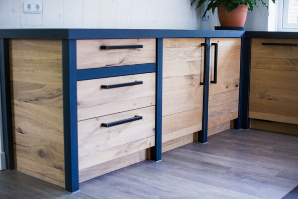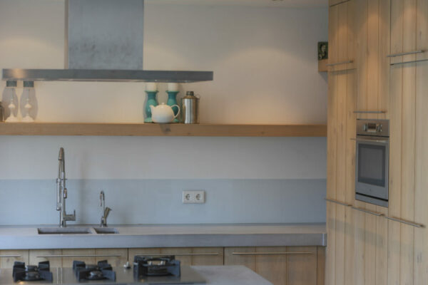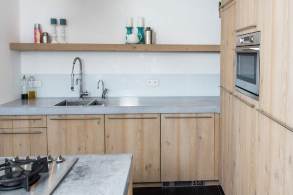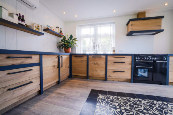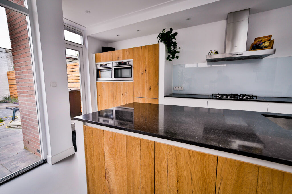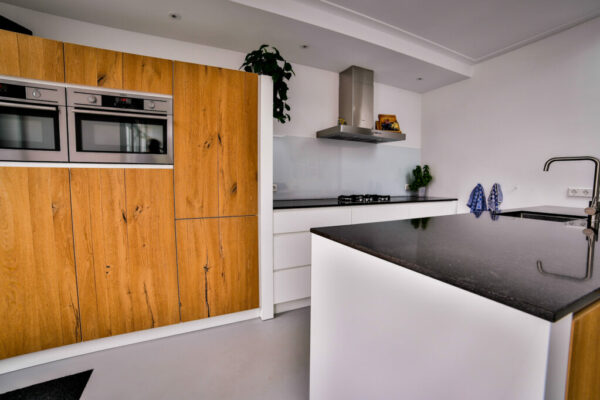 De perfecte mix tussen witte panelen en eikenhouten kasten. Een landelijke keuken die perfect met z’n tijd meegaat.